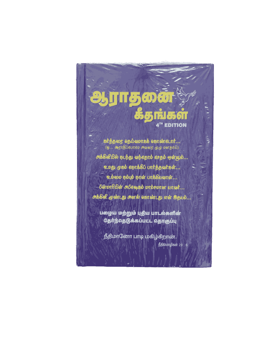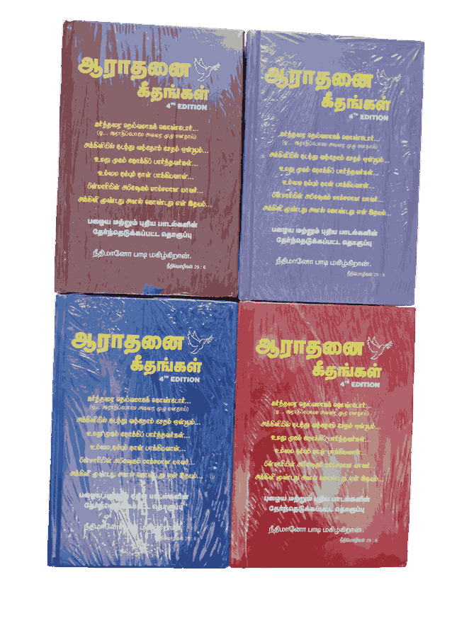Aarathanai Geethangal Song Book 4th Edition – The 4th Edition of Aarathanai Geethangal is a comprehensive collection of sacred Tamil Christian songs. Perfect for worship, church services, and personal devotion, this songbook is a valuable resource for spiritual gatherings.