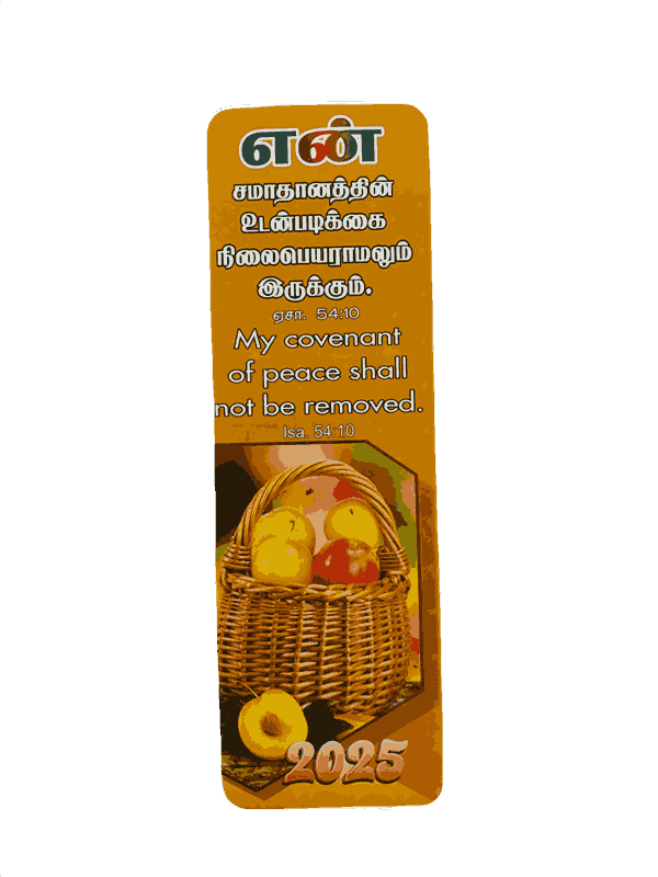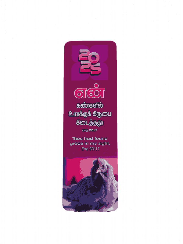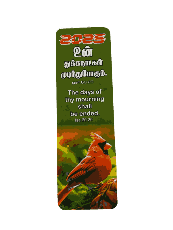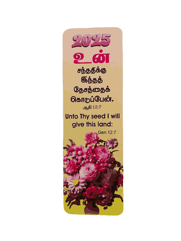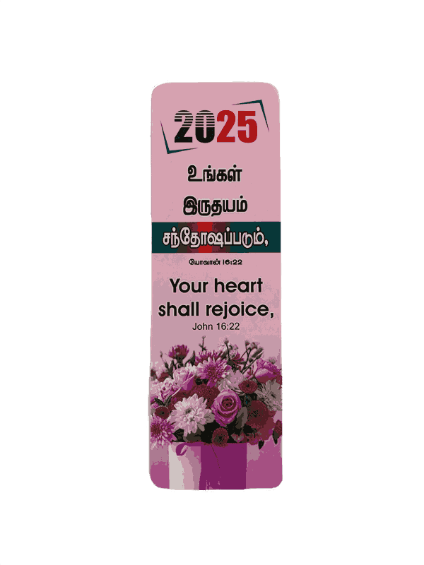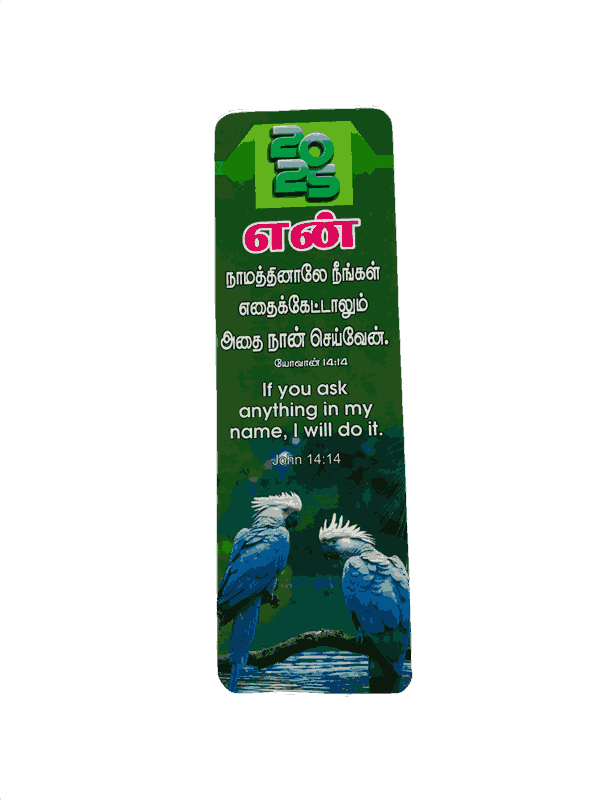 The Bible Bookmarks 2026 in Tamil/English with 100 Different Bible Verses (100 pieces) are a set of durable, high-quality bookmarks, each featuring a unique Bible verse. Ideal for Bible study, personal devotion, or as a gift, they offer daily inspiration and encouragement.